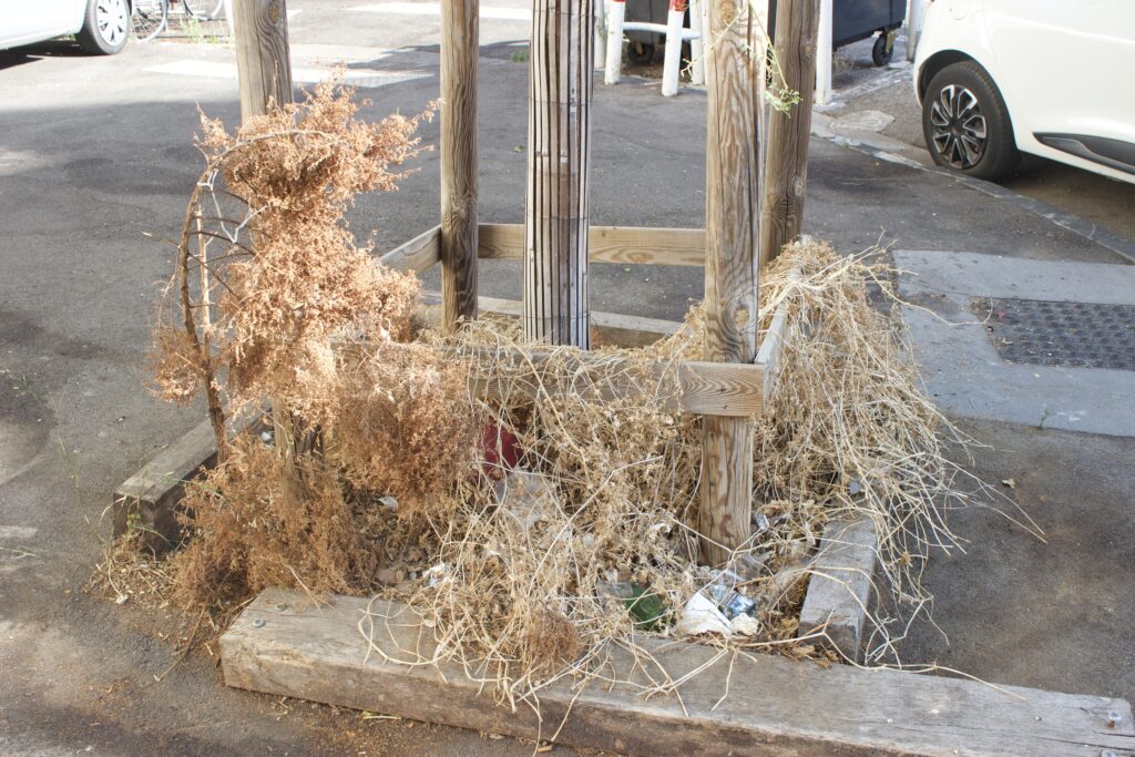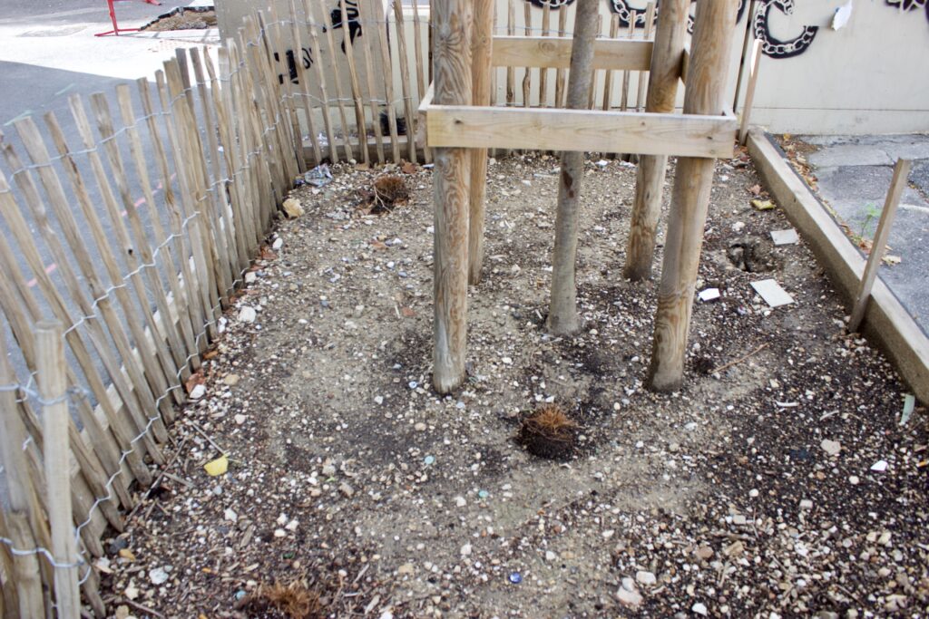 10) Les déchets jetés tous les jours dans les puits d’arbres, notamment des mégots de cigarettes et des capsules de bouteilles de bière.