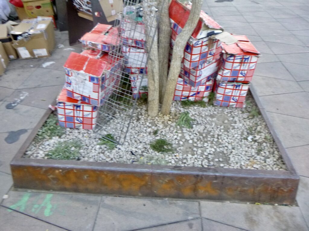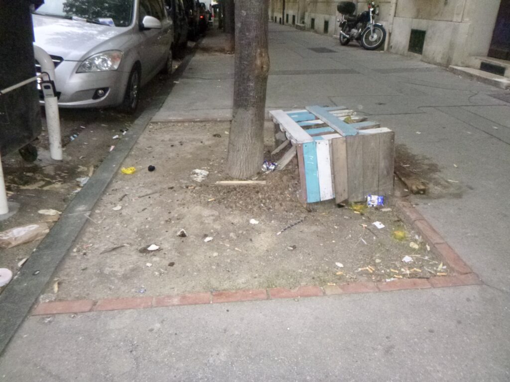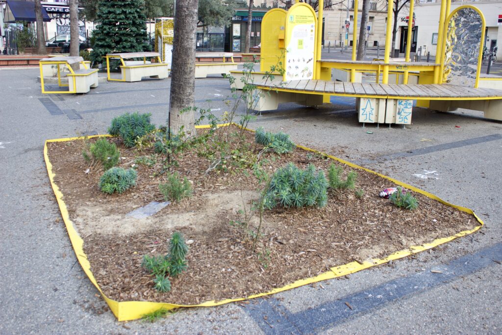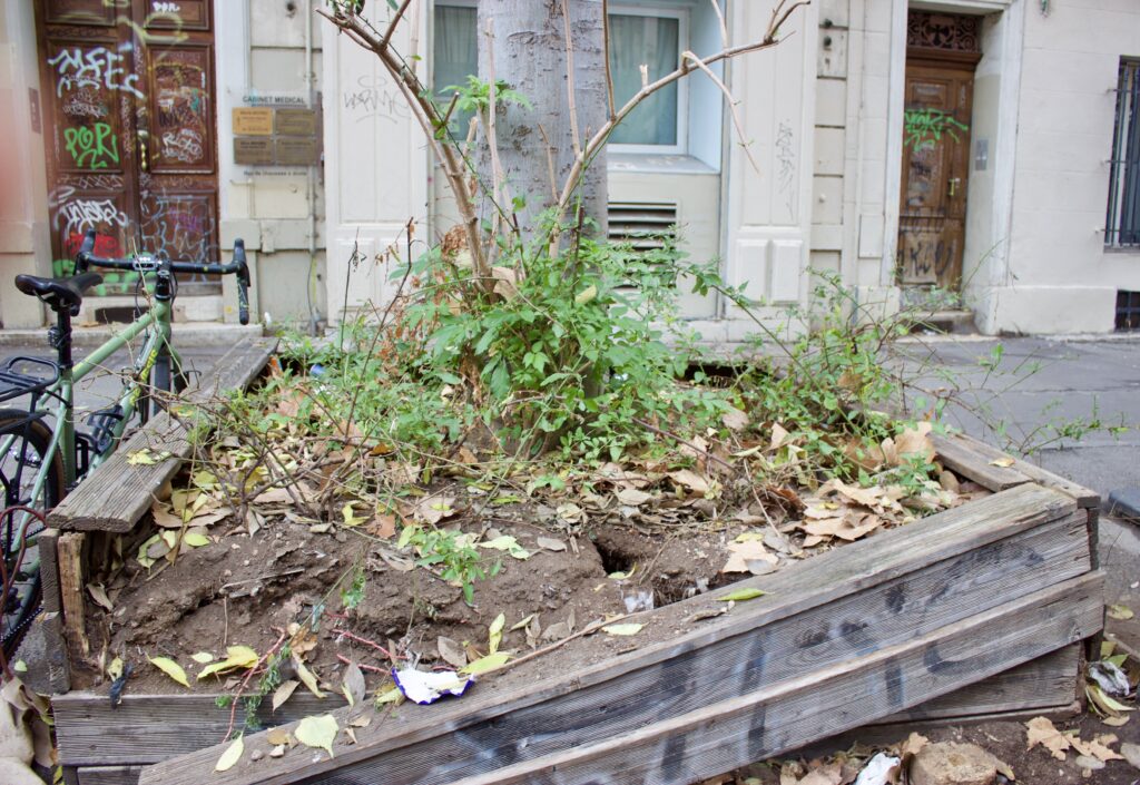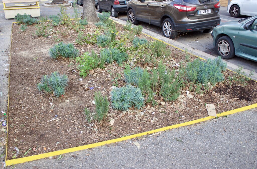 Je nettoie régulièrement, mais l’espace public est peu respecté. Planter et entretenir des couvre-sols sous les arbres, vu ces comportements anti-sociaux si ancrés et incontestés, serait une perte d’efforts. Si on regarde par exemple les plantations récentes devant la Gare de la Blancarde, à la Place Charles de Gaulle et à la Place Jean Jaurès, on remarque qu’on permet aux chiens et aux enfants de franchir les barrières pour tout piétiner, qu’on a arraché et cassé beaucoup de plantes, et qu’on salit constamment.