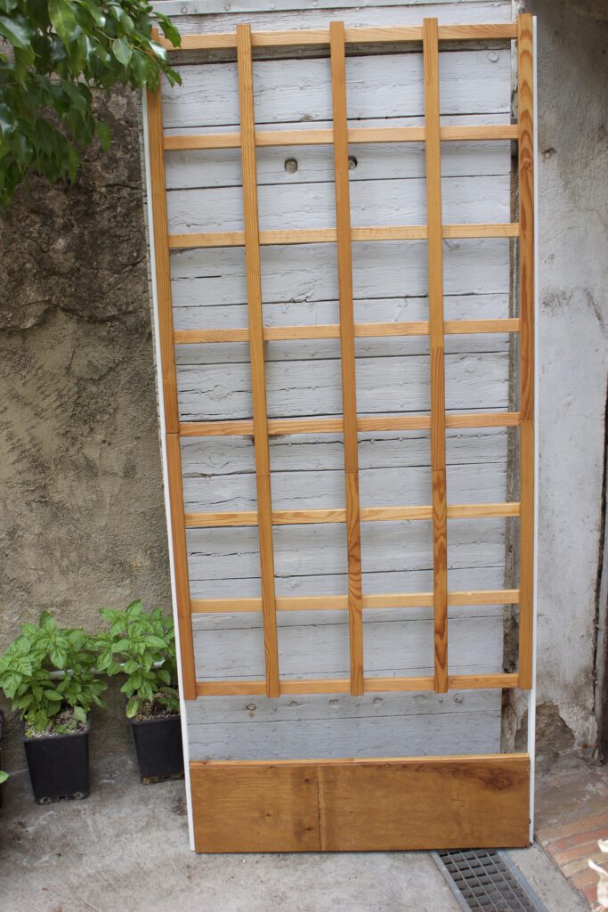 Quand j’ai vu 13 jasmins étoilés sur des tuteurs, j’ai été complètement perplexe. Je me suis dit : “je me demande comment ils vont les utiliser” et j’ai ri de cette absurdité, comme l’aurait fait n’importe qui issu de cultures horticoles plus avancées, même vaguement familier avec les jardins d’ornement. Deux jasmins étoilés ont été plantés près des troncs de deux tilleuls, mais face au Mistral et sans support structurel supplémentaire ils n’arriveront pas à s’attacher au troncs. Les autres étaient massés au centre des grandes plates-bandes. Bizarre. Quoi faire? Pas de bonne solution évidente.