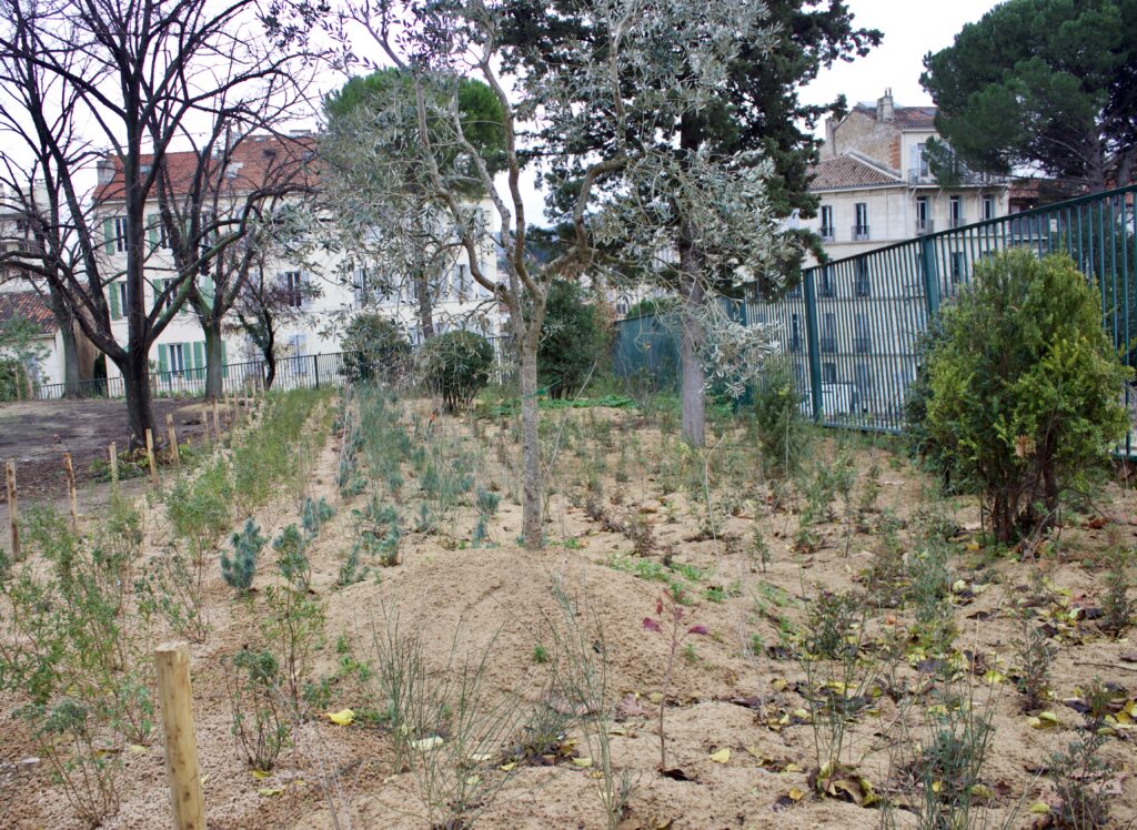 Juste de l’autre côté de l’avenue se trouve une jardinière assez récente, témoignant que l’enseignement horticole du public semble être inexistant à Marseille.
